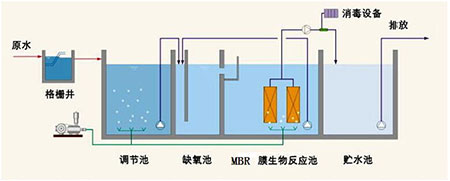 ?。?)調(diào)節(jié)池出水用提升泵提升到缺氧池,同時(shí)經(jīng)過(guò)曝氣硝化過(guò)的污水回流進(jìn)行反硝化脫氮。出水進(jìn)入接觸氧化池,通過(guò)曝氣進(jìn)行好氧生化處理同時(shí)進(jìn)行硝化反應(yīng)。