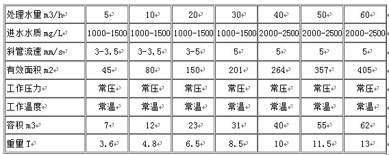 該斜板沉淀器沉淀污水固體、懸浮物、污水經加混凝反應后由設備上端進水口進入設備,經錐形反應池混凝形成礬花,逐漸沉降至設備污泥斗中(設備可連續(xù)、間斷排泥)形成排泥,在反應池中污泥沉降,清水上升至斜板(管)中,并進一步沉降污水中的顆粒,清水上升至溢流槽后出水。