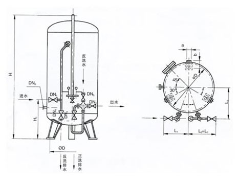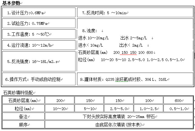 石英砂過濾器(又稱機(jī)械過濾器、砂過濾器等)是將需過濾的水經(jīng)泵升壓后(約0.6MPa)通過濾層達(dá)到過濾目的,所以又稱壓力式過濾器。